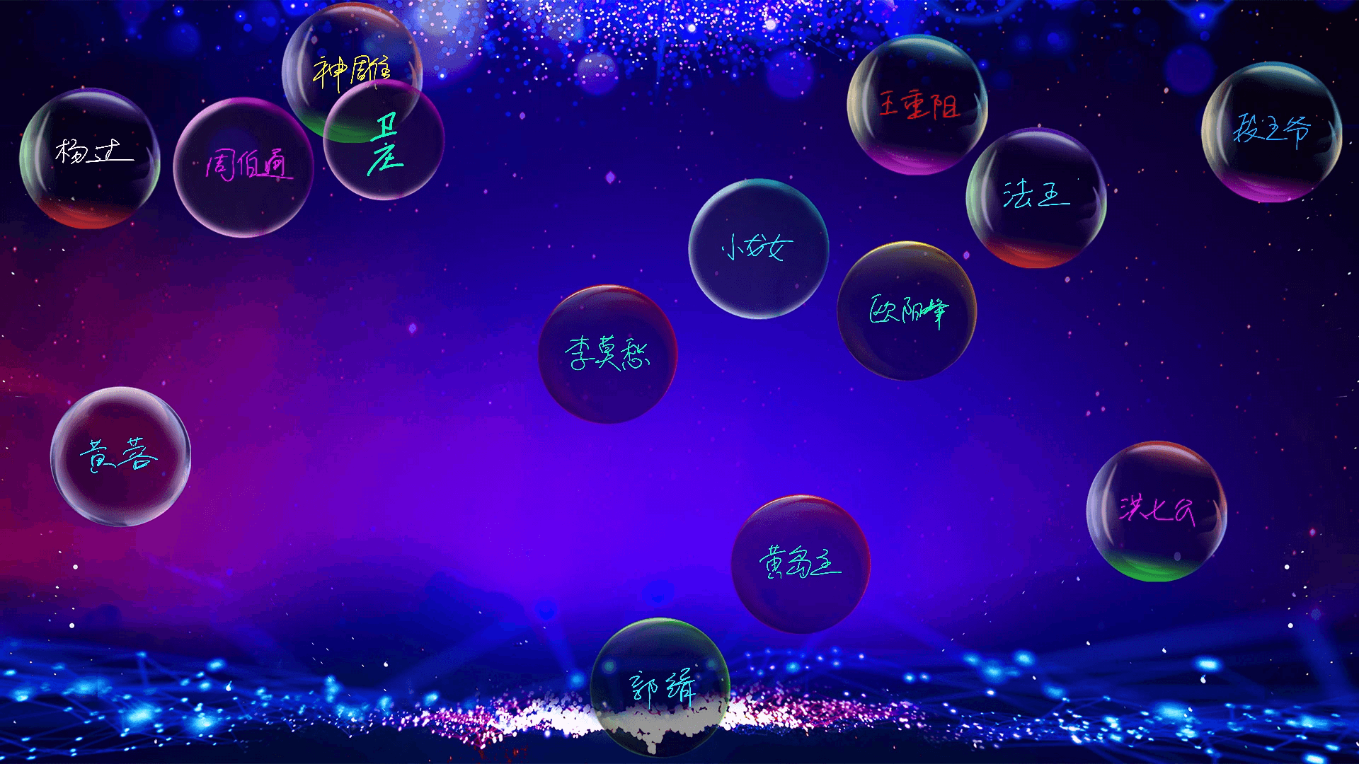取代传统的纸质签到簿,来宾可通过手机输入姓名或绘制签名,生成个性化的电子签名墙;用户在Pad/手机上写下自己的签名,完成后签名以多彩泡泡的形式在大屏幕上相互碰撞,增强参与者的归属感。